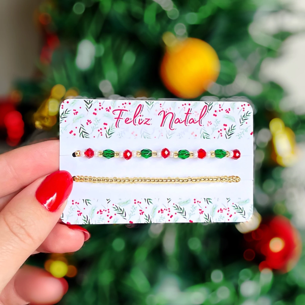 Celebre a magia do Natal com as Pulseiras Encanto Natalino, uma dupla festiva criada para iluminar seus looks de fim de ano.